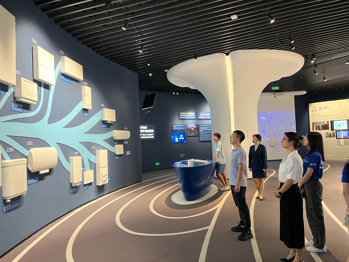 在海尔集团的展厅,实践团队成员见证了“中国式管理”的全球化实践。从早期为欧美品牌代工“借船”,到以“人单合一”模式建立29个海外工厂、122个营销中心“造船”,再到卡萨帝、GE Appliances等高端品牌矩阵“驶”入欧美主流卖场,海尔用本土化研发、制造、营销“三位一体”战略,为我国家电企业“高端出海”树起标杆。在参访过程中,学生们围绕企业出海战略、国际化人才培养向专家团队进行积极提问,与专家人员热烈互动,收获颇丰。