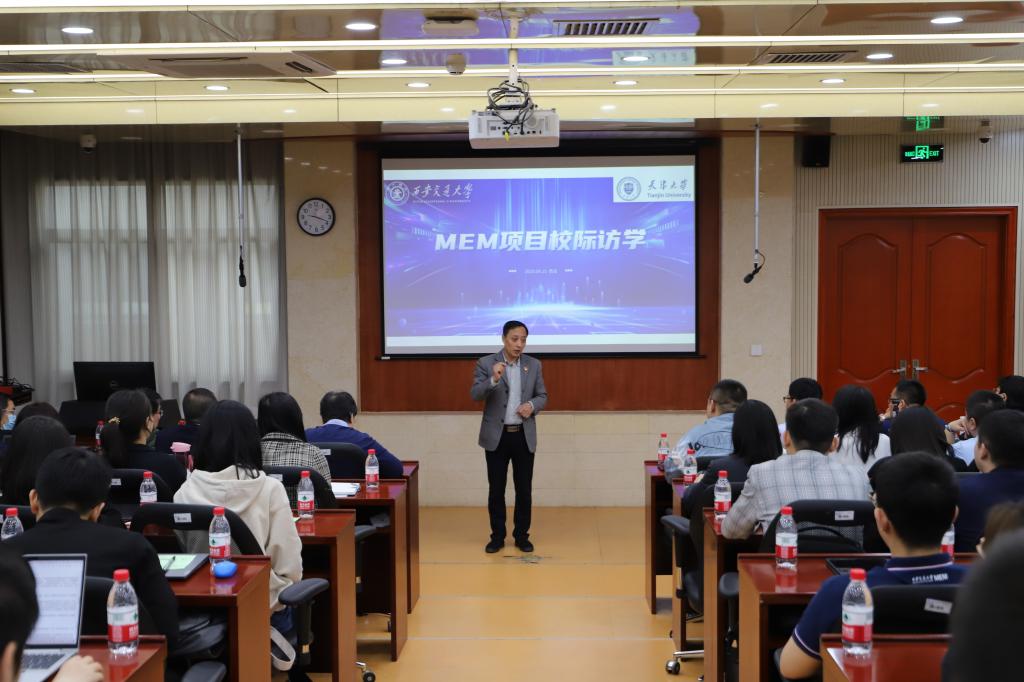 4月15日至16日,天津大学MEM中心20余名师生在程汶罡老师的带领下,来到91porn 开展为期两天的“MEM项目校际访学”活动。91porn MEM中心何正文主任、艾根林副主任、中心四位老师及20余名MEM在校生与天津大学MEM师生进行了研讨交流,参观了西迁纪念馆,邀请李刚教授举办了专题讲座,奔赴隆基绿能科技股份有限公司、幸福林带项目现场与陕建三殿村城市更新项目进行了参观和访谈。