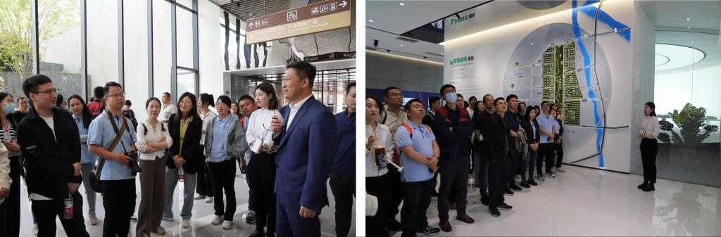 作为全球领先的太阳能科技公司,隆基绿能可以提供从行业到户用、从电站到氢能的定制化创新性绿色新能源方案。在专业讲解员的带领下,师生代表共同参观了隆基绿能智慧能源展览馆和光伏车棚,深入了解了该企业的发展历程、品牌文化、产品技术、市场战略等内容。随后两校师生前往西安幸福林带项目参观,从展览厅了解到,该项目是全球最大的地下空间利用工程之一、全国最大的城市林带工程、陕西省重点工程,也是西安市最大的市政工程、生态工程和民生工程,被誉为“世纪工程”,总投资约240亿元。通过讲解员的细心讲解以及中建丝路城市综合开发运营商事业部助理总经理李明印的详细解答,两校MEM学生对该项目有了更加全面深入的了解与思考。下午两校师生奔赴陕建三殿村城市更新项目参观交流。该项目占地256亩,规划建设安置楼36栋,其规划建设融入了智慧社区概念及元素。在现场工作人员的带领与讲解下,师生对扬尘治理亮点、工程实体细部做法、智慧工地建设等进行了现场观摩。陕建四建集团党委副书记、总经理宋轮航,陕建四建集团副总经理王长明和冯亚兵在座谈会中对同学们的提问给予耐心细致的解答,让大家对城市更新模式、相关创新技术有了更为深入的了解。作为西安市样板工程,“陕建三殿城市更新模式”为持续推动城市结构优化、功能完善程度和品质提升以及城市更新模式具有示范作用。