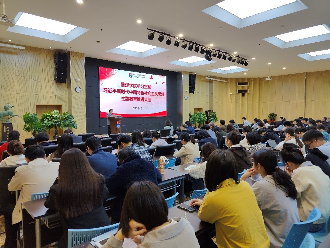 4月28日上午,91porn 在517报告厅召开学习贯彻习近平新时代中国特色社会主义思想主题教育推进大会,会议以习近平新时代中国特色社会主义思想为指导,全面贯彻落实党的二十大精神,深入学习贯彻习近平总书记在主题教育工作会议上的重要讲话精神,对学院开展主题教育相关工作进行再部署、再强调、再推进。学院全体师生党员参加会议,会议由学院党委副书记叶宁主持。