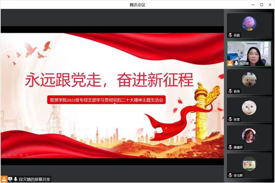 2022级专业学位硕士党支部于10月27日开展“永远跟党走、奋进新征程”专题组织生活会。会议由支部书记、2022级工业工程与管理硕士研究生段文婧主持。