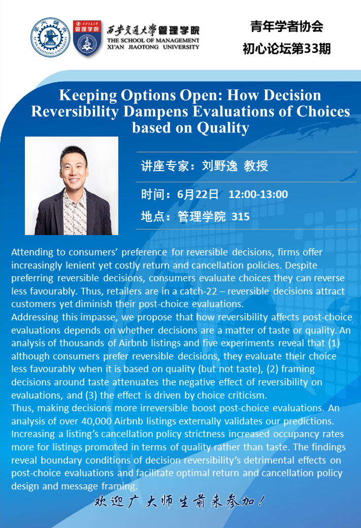 Keeping Options Open: How Decision Reversibility Dampens Evaluations of Choices based on Quality