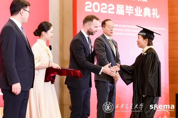 The commencement ceremony for 2022 graduates of the cooperation program – Master of Entrepreneurship and Innovation (Big Data and Artificial Management) – of Xi'an Jiaotong University and SKEMA Business School (a French university) was held recently, attended by leaders of the two universities, teaching faculty and the program management team.