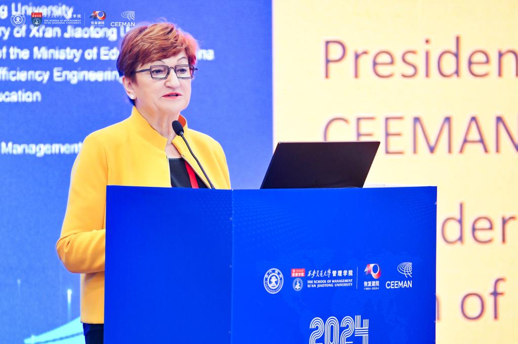CEEMAN主席Danica Purg在致辞中强调了疫情下国际合作的重要性,并肯定了此次会议对教育创新的推动作用。她表达了CEEMAN在全球范围内促进管理学科发展的承诺,期待论坛为国际教育合作提供新动力。