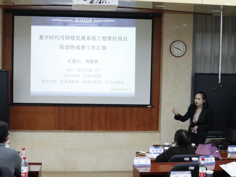 特聘研究员、博士生导师郑嘉俐研究员进行了以《数字时代可持续发展系统工程项目阶段性成果工作汇报》为主题的青托汇报,就总体进展概况和个人主要研究工作两个方面展开论述,重点针对《中国优化生育和延迟退休政策对居民碳足迹的影响》展开学术成果汇报,并提出了相关建议。