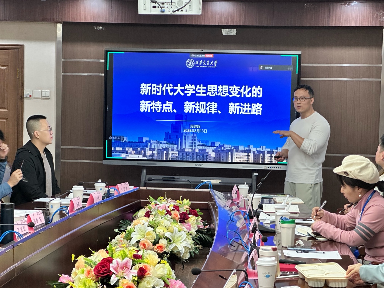 会上,段继超主任首先做“新时代大学生思想变化的新特点、新规律、新进路”的分享交流。他结合学校2024级新生的数据,详细分析了新时代大学生的新学情和新挑战。从学生关切的现实问题、自我定位、学习期望状态等多个维度,对数智时代的学生群体新特征进行了全面剖析。以打造崇实小院为例,指出要利用有限空间为学生提供暖心的无限可能,拉近与学生的情感联结,强调要充分利用好资源集成、智慧互动的书院“一站式”学生社区,深入推进双院协同,更好地关爱学生,让班主任工作有形、有感、有效。