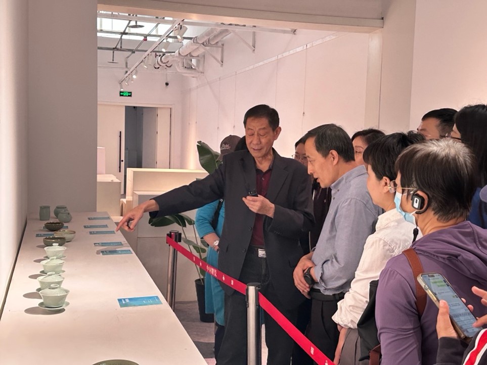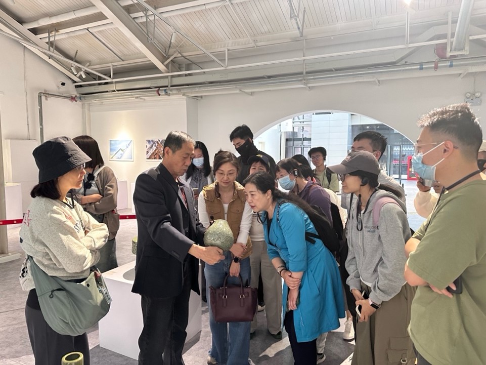 在耀州窑美术馆,中国陶瓷艺术大师孙若鹏为大家展示了“耀州窑四宝”——倒流壶、良心壶、公道杯和凤鸣壶,系统讲解了耀州瓷的器型、釉质、纹饰等核心特征,剖析传统工艺的美学价值。通过大师的分享,师生们深入了解了耀州窑的文化底蕴和技艺传承,感受到了千年瓷韵与匠心精神的交融。