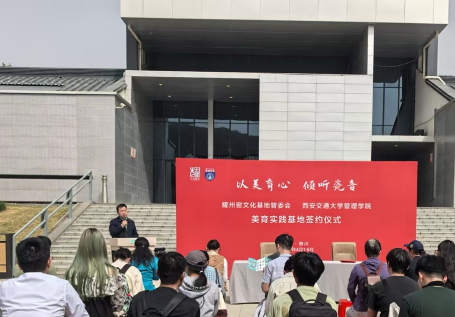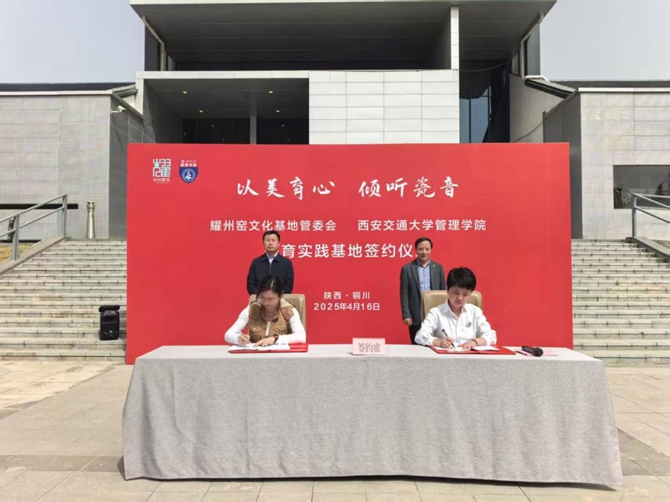 与铜川市耀州窑文化基地管理委员会正式签署合作协议,共建“校外美育实践基地”。双方以千年耀州窑文化为载体,将非遗技艺、历史传承与现代教育深度融合,探索校地协同美育实践育人新模式,旨在以美育为纽带,培养学生的文化自信、创新精神与实践能力。