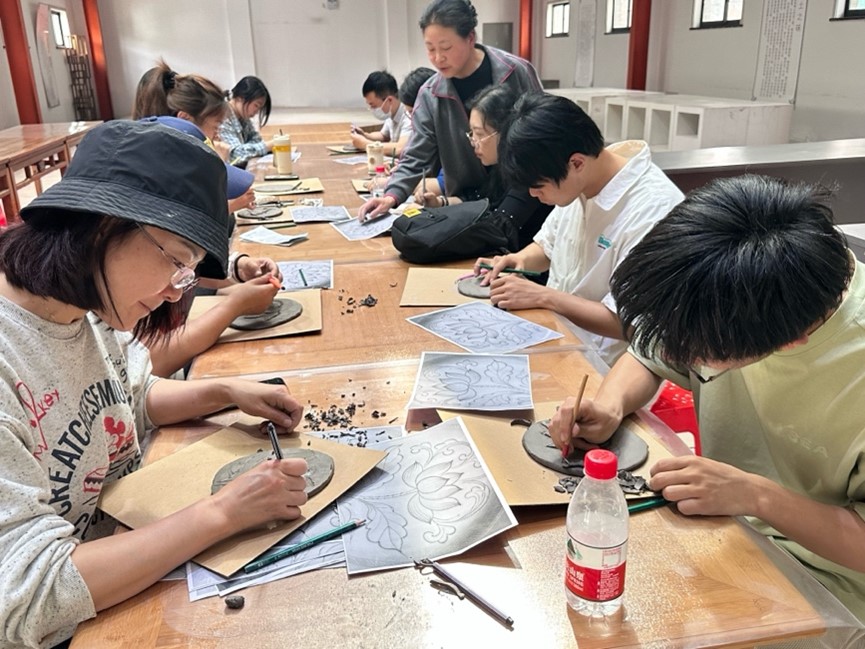 在刻花体验项目中,师生们在非遗刻花大师指导下,以“刀为笔、泥为纸”,体验耀州窑独特的“刀刀见泥”浅浮雕技艺。通过刻划牡丹、莲纹等传统纹样,深刻体会到刻花工艺的精准与细腻。