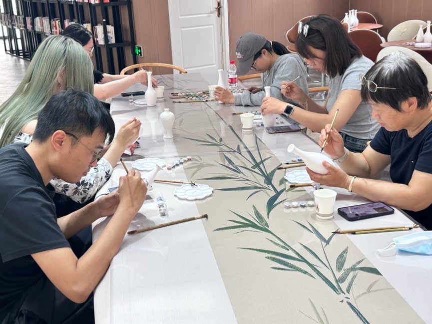 在陶瓷彩绘瓶体验项目中,师生们手持画笔,以素白瓷瓶为画布,在釉面上挥洒创意。通过绘制山水、花鸟、纹样等图案,不仅学习传统耀州瓷的装饰技法,更将个人审美融入作品。