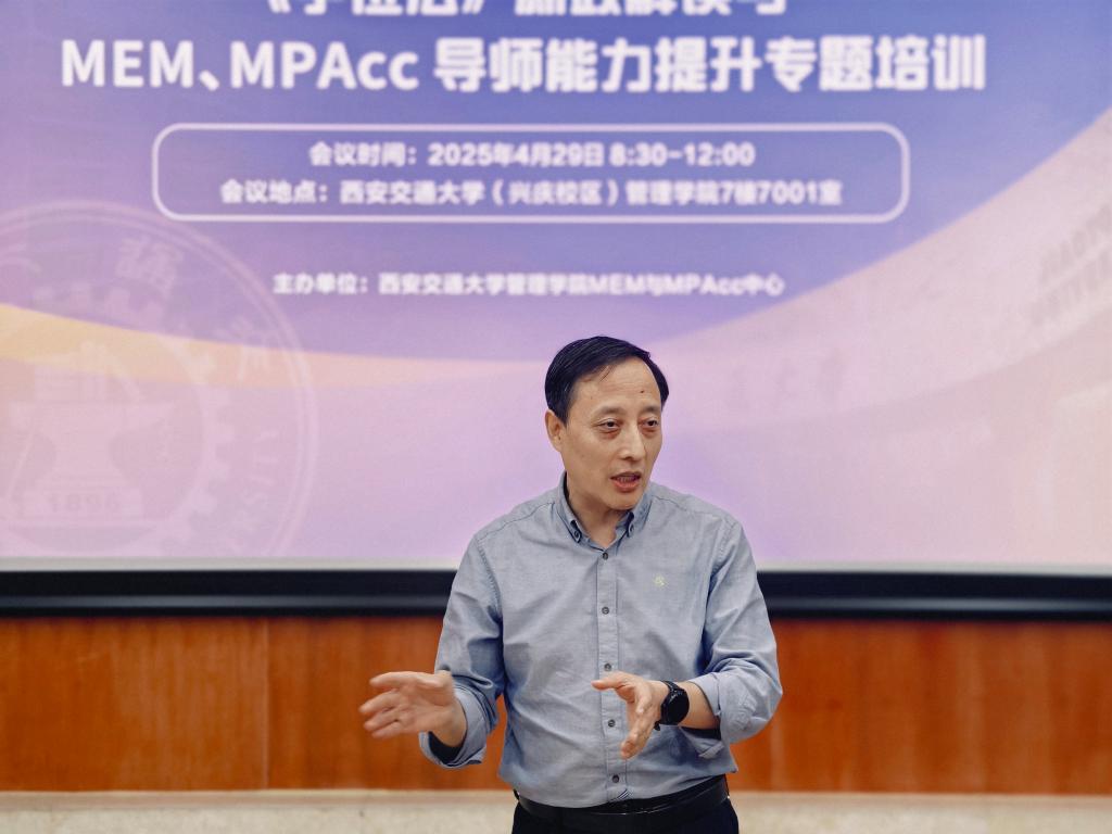 《中华人民共和国学位法》于2025年1月1日起正式实施。标志着我国专业学位研究生教育进入法制化、规范化的新阶段。从法律地位上明确了学术学位与专业学位的平等性,强调了专业学位培养模式的实践导向性,精确回应了国家重大战略需求。本次培训主讲嘉宾向与会导师详细介绍《学位法》和学位条例相关法条的异同,对MEM和MPAcc两个项目对“实践成果”认定的工作进展进行了阶段性汇报,在帮助校内外导师深入理解《学位法》,进而更好地指导学生方面具有重要意义。