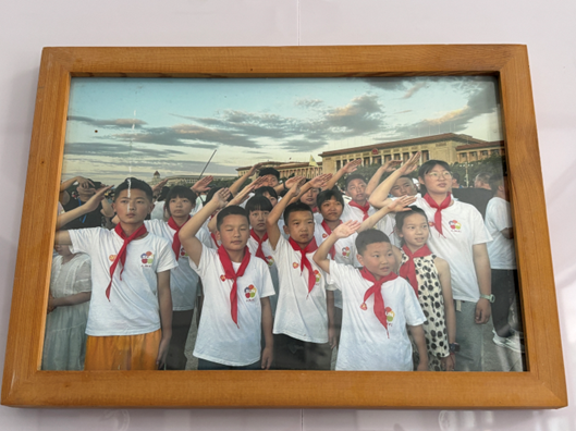 图7 餐厅墙上挂的孩子们敬礼的照片