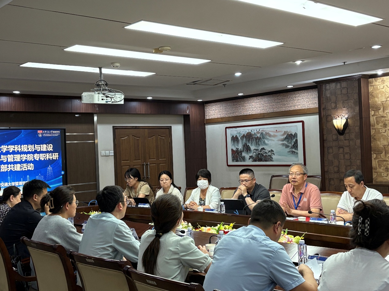 郭菊娥教授、赵玺副院长分别就交叉学科师资引进、校内资源整合、文科奖项申报、人工智能赋能一流学科建设等进行了充分交流。学科办李英英副主任介绍了教育部关于一流学科建设的最新精神。