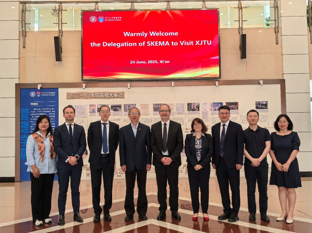 与法国SKEMA商学院合办的创业与创新(大数据与人工智能管理)硕士项目取得的一系列成绩表示高度肯定,并对SKEMA商学院对于合办项目的支持和投入表示衷心的感谢。他介绍了西安交大的发展历程、学科优势以及中国西部科技创新港的建设成果,并表示,西安交大的工商管理学科长期位居全国前列,并与全球知名高校开展深度合作,致力于培养具有国际竞争力的复合型管理人才。期待在两校现有合作的基础上,进一步深化师生互访机制,拓宽学术交流渠道,创新教育合作新模式、新路径,以携手开创两校合作交流新局面助推教育国际化开启新篇章。