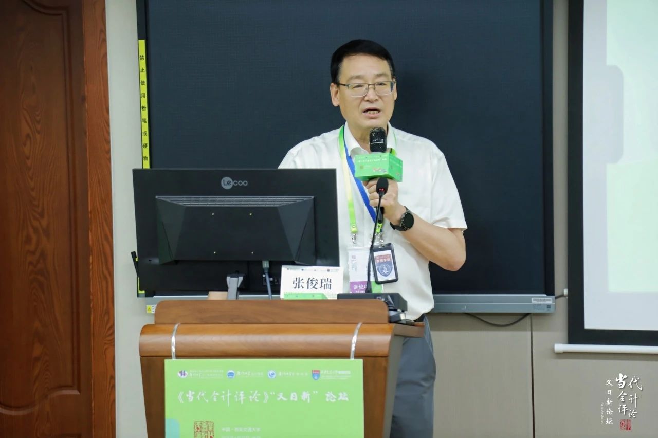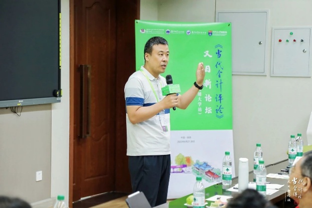 管理学科的发展和现状,并为本次论坛特意创作一首五言藏头诗,含“当代会计评论又日新论坛好”之意,以表达对论坛和参会者的致敬与祝福:他在诗中寄托了对青年学者不断超越、锐意进取的殷切期望,并鼓励大家勇于提出新观点、探索新方法,以推动会计学科理论与实践的持续创新与进步。最后,张教授代表东道主,对本次论坛的顺利召开致以美好祝愿,期待《当代会计评论》继续发挥桥梁作用,凝聚学术共识,启发前沿思考,为推动会计学科的高质量发展贡献更多智慧与力量。