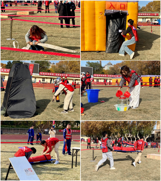 本次运动会将消防知识与体育竞技巧妙融合,设有水带接力、烟雾灭火、障碍救援和危机时刻等多个特色项目。在水带接力项目中,队员们配合默契,甩水带、接接口、冲刺,动作一气呵成,展现了高效的团队执行力。烟雾灭火现场,面对模拟的浓烟环境,队员们沉着冷静,迅速判断火源,熟练操作灭火器,成功扑灭火情。在考验综合能力的障碍救援和危机时刻项目中,管院健儿们更是凭借敏捷的身手、清晰的思路和无私的协作,化身为临危不乱的消防卫士,一起克服重重障碍,圆满完成了各项救援任务。