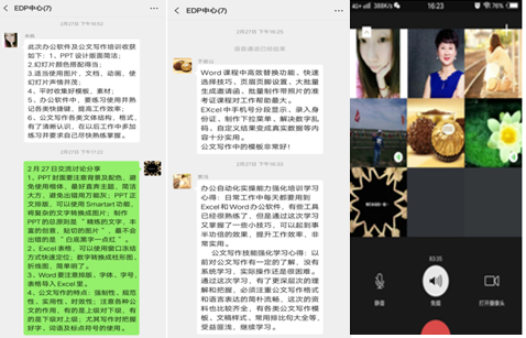 在正式开学前,在线培训的组织和学习计划的制定,调动了大家的学习和工作热情,也增强了行政团队的凝聚力。在多次小组讨论中,学员们围绕行政礼仪、office实操等办公常见和常用的问题开展了深入的交流,解决了平时工作中可能一直存在但是没有时间仔细思考和学习的困惑,也在小组讨论中自然而然形成了部门共同进步的积极向上的文化,进而达成学院行政团队共同向专业化、高效能转变的共识。