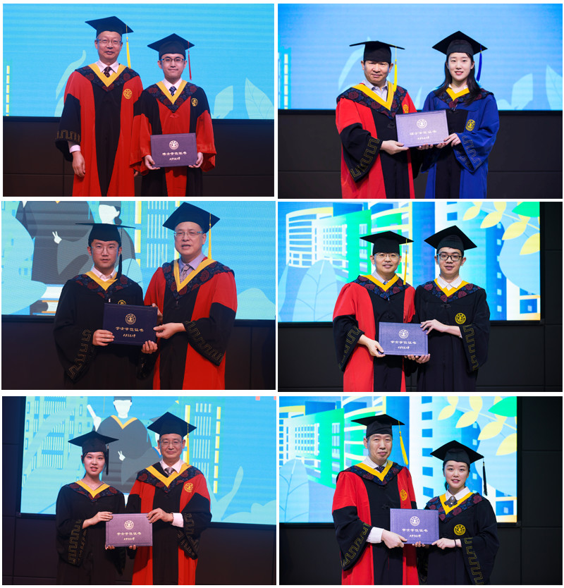 学位授予仪式上,毕业生们依次走上主席台,接受学院授予学位证书,标志着他们在交大的学业已经圆满完成,期待着走向广阔的人生舞台。伴随着庄严的颁证仪式,即将离开母校的学子们感慨万千,与老师们亲切合影;为敬爱的导师送上美丽的鲜花,感恩他们悉心培养;给导师一个深深地拥抱,感谢他们谆谆教导,场面暖心而动人。