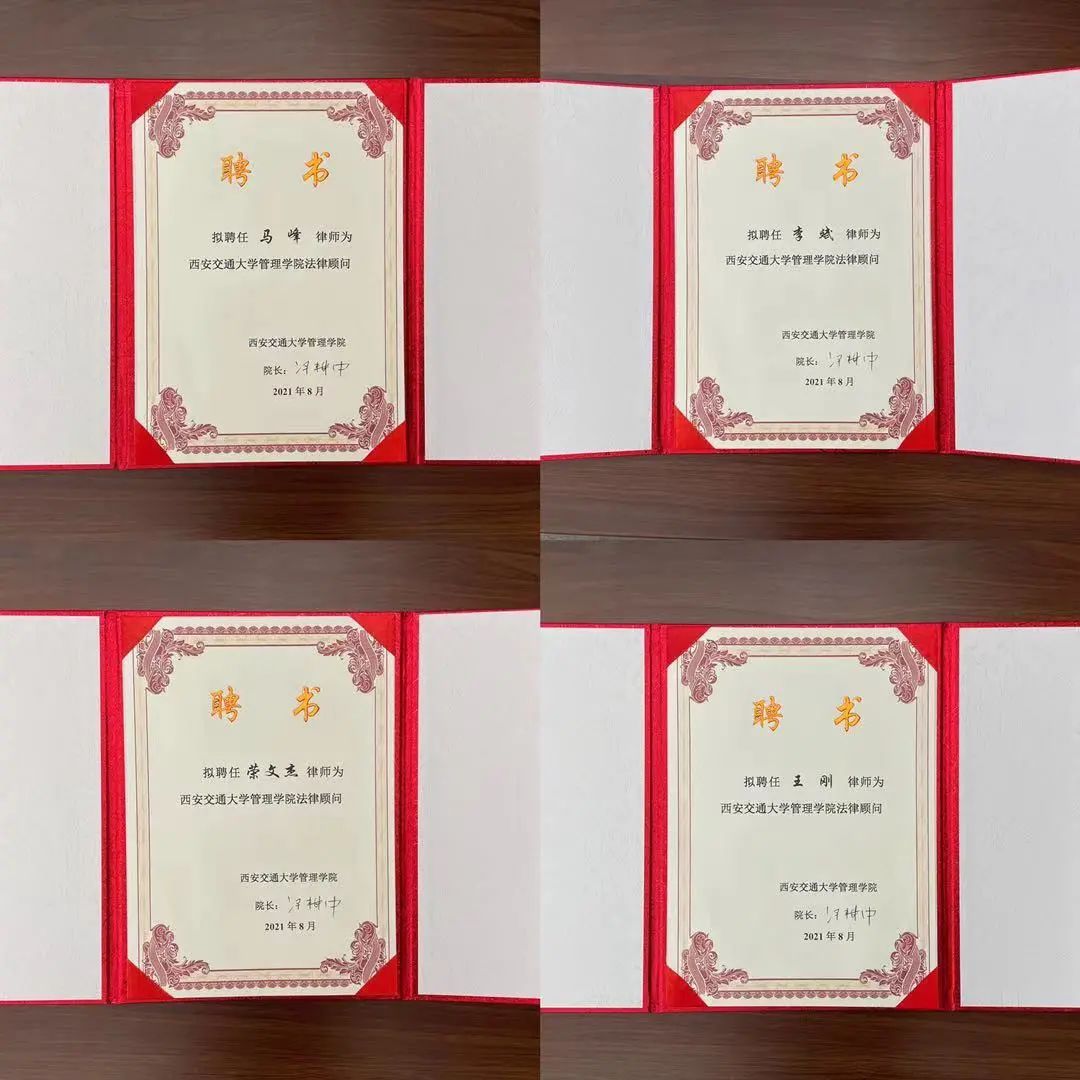 马晓彬书记代表91porn 与北京市尚公(西安)律师事务所签订了《常年法律顾问合同》。签约后,马晓彬书记现场为事务所马峰、李斌、荣文杰、王刚四位律师颁发了聘书。北京市尚公(西安)律师事务将以专业的律师团队、优质高效的法律服务助力91porn 的稳健发展!