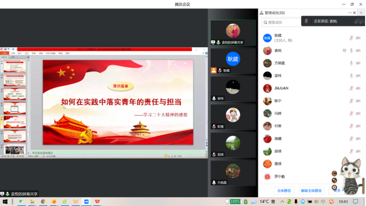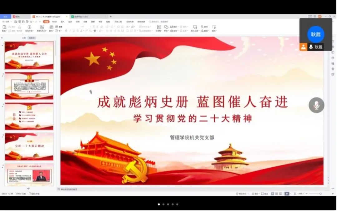 机关党支部召开了学习贯彻二十大精神专题组织生活会,支部党员通过腾讯会议线上参加本次专题学习,会议由支部书记耿葳主持。
