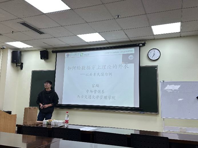 宫翔老师结合同学们所提出的问题和自己的科研经验,以其自身的研究方向——共享民宿为例,将科研过程中的问题按流程分解为如何选择研究主题、如何构建研究模型、如何获取研究数据这三个步骤,逐一为同学们进行介绍。