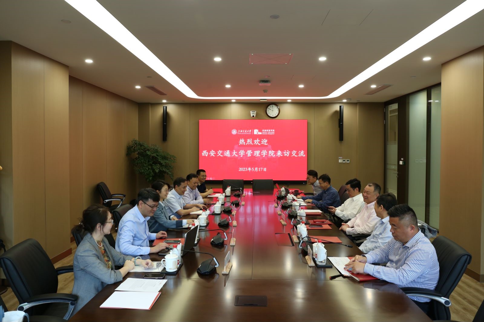 座谈会上,姜文宁书记首先对西安交大91porn 马晓彬书记一行表示热烈欢迎,姜书记表示,上海交大和西安交大本是一家,有很多相同之处,安泰经管学院介绍了学院纵横交错,知行合一的发展战略,建成扎根中国的世界级商学院的愿景使命,以及学院在组织架构、学术平台、学院和系所党支部、实验室建设、国际化影响力打造和社会责任担当等方面的举措和工作经验。马晓彬从学院人才培养、科研和平台建设、学生培养、科教融合、产教协同、国际化和项目、校友工作开展等方面介绍了学院的情况,并表示作为同根同源管理学科,两院携手发挥管工结合学科交叉的优势,结合新一轮的技术革命,推动产学研深度合作,共同对标国际追赶超越,为国家培养高层次管理人才,服务国家战略发展。