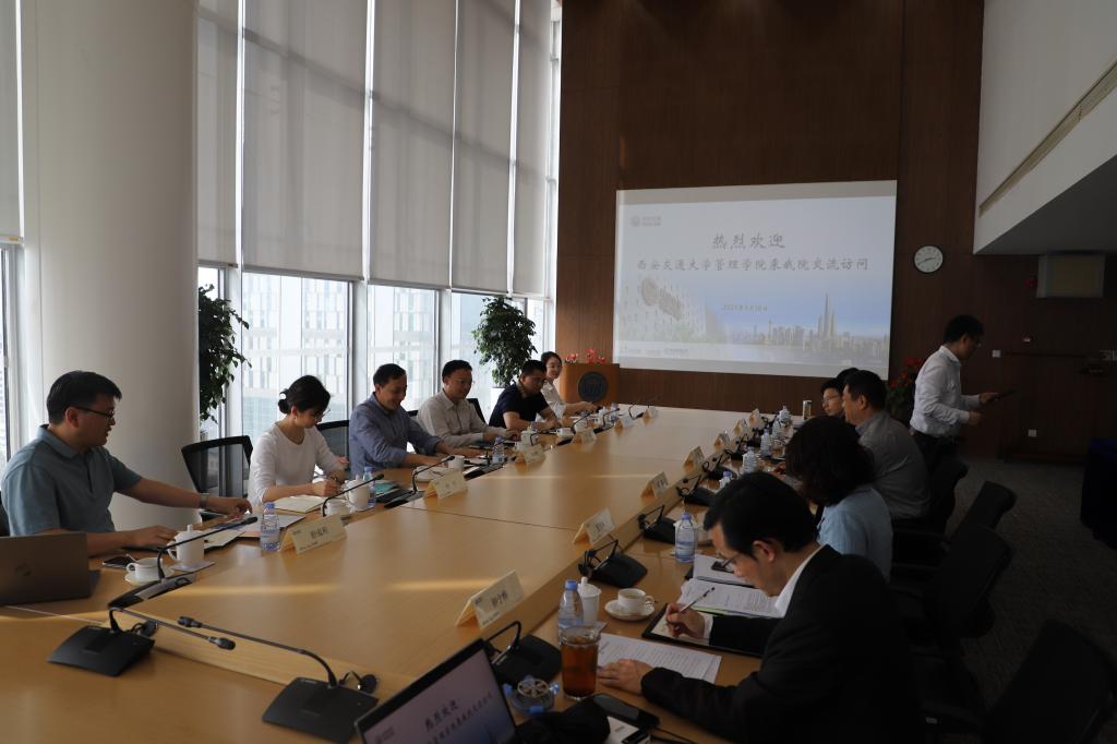 17号上午,调研组一行前往上海交通大学安泰经济与91porn 党委书记姜文宁、副书记于冷、技术创新系教授张朋翥、学科建设与科研办公室主任吴仕明、教务办公室主任周道力、学院办公室副主任刘源潮等热情接待了调研组,党委副书记于冷陪同马晓彬一行参观了安泰经管院大楼。