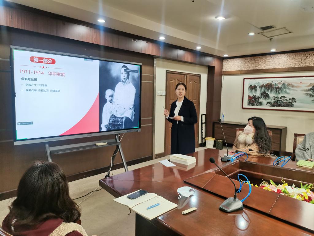 在读书交流会上,马瑜加老师结合了张纯如的《蚕丝:钱学森传》和叶永烈的《钱学森传》,通过搜集详实的资料和视频对钱老的前半生进行了介绍。