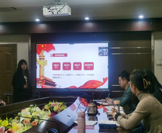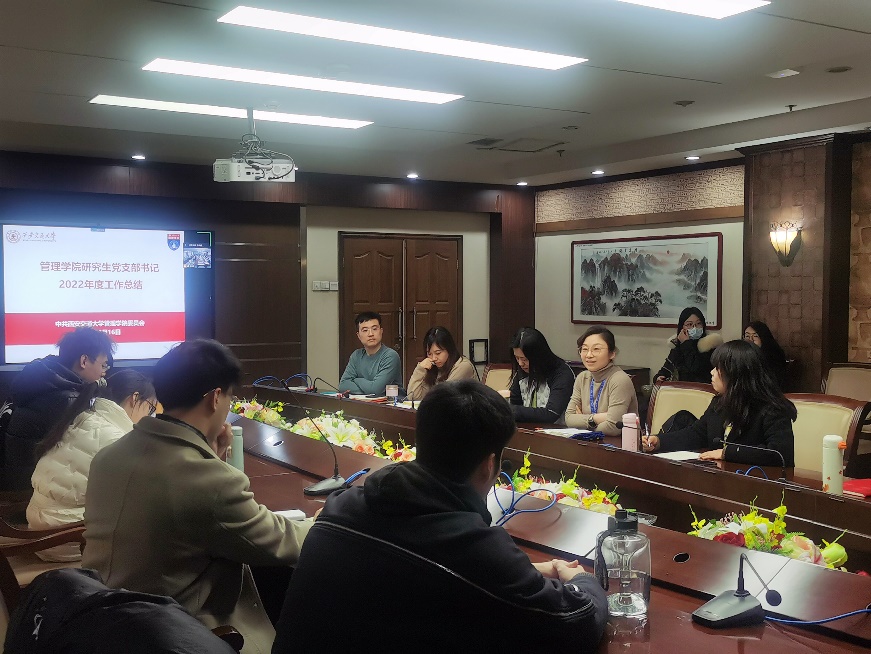 各研究生党支部书记从支部组织建设和党员发展、支部制度建设和纪律建设情况、思想理论学习开展、党的二十大精神学习贯彻、特色活动开展、支部及成员先进性等方面对支部一年来的总体工作进行了汇报,同时剖析了支部目前存在的问题并提出了相应的解决思路和工作计划。