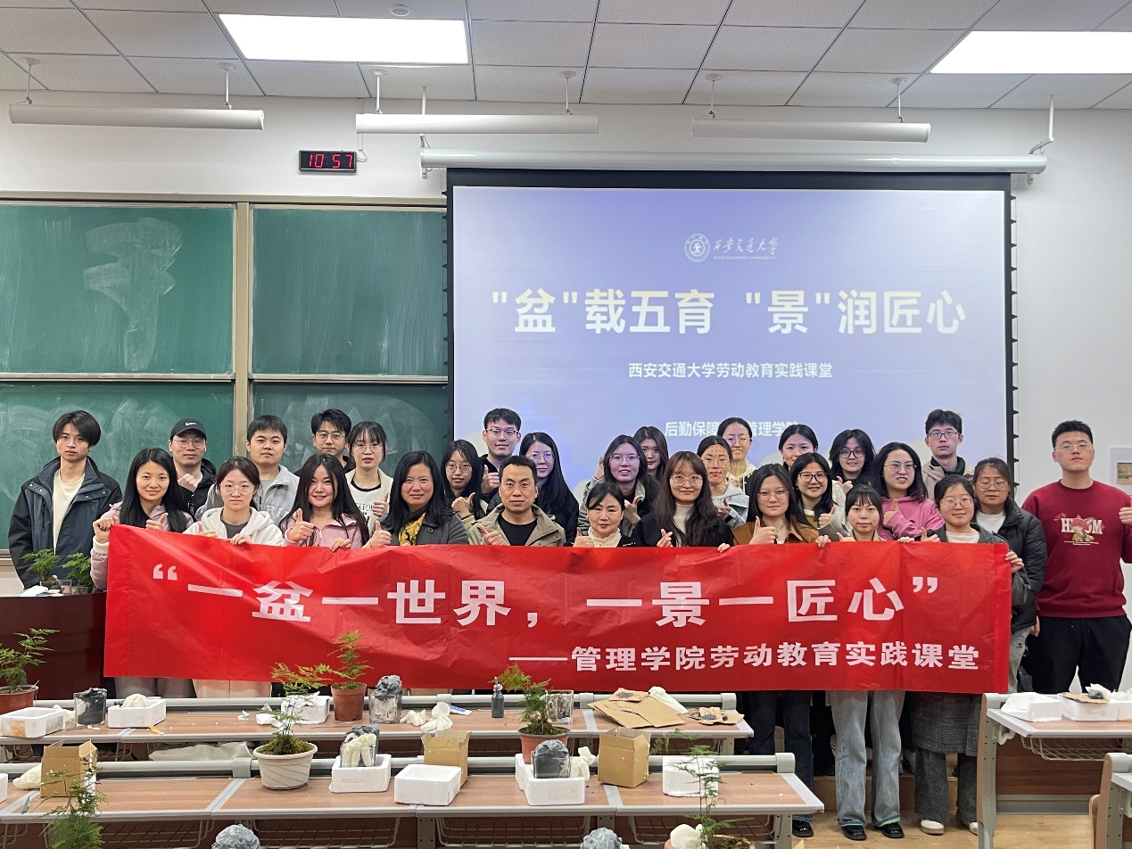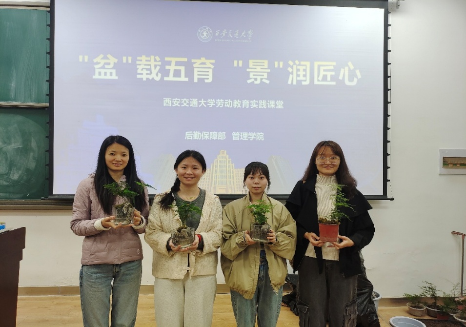 联合后勤保障部共同举办“盆载五育,景润匠心”盆景制作劳育实践课堂,通过理论讲解与实践操作相结合的方式,让学生在体验传统技艺中感受劳动之美,提升审美素养,涵养耐心细致的工匠精神。