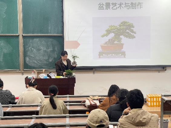 在课程的理论环节,指导教师系统讲解了盆景艺术的发展源流、主要流派及创作要领,从古代的文人雅士到现代的艺术大师,每一个时期都留下了独特的盆景印记,还深入讲解了盆景的主要流派,如婉约细腻的苏派、苍劲豪放的岭南派,每一派都承载着地域文化的独特韵味。