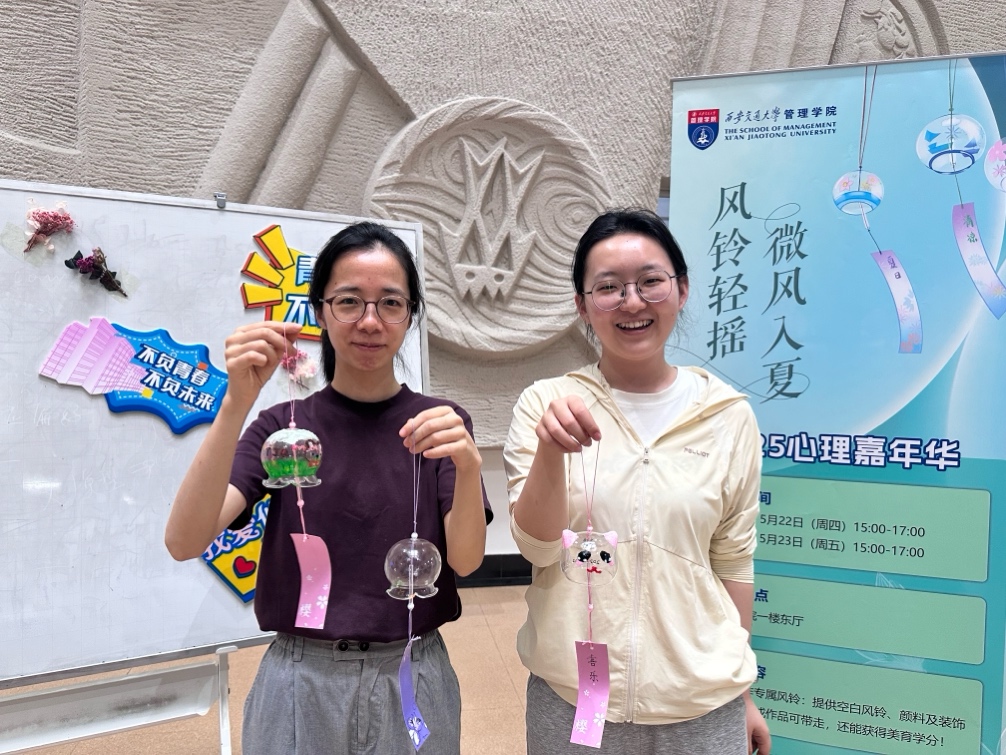 于一楼东厅开展了“风铃轻摇·微风入夏”心理嘉年华活动,大家通过手绘风铃创作与心声分享,释放压力、传递祝福。