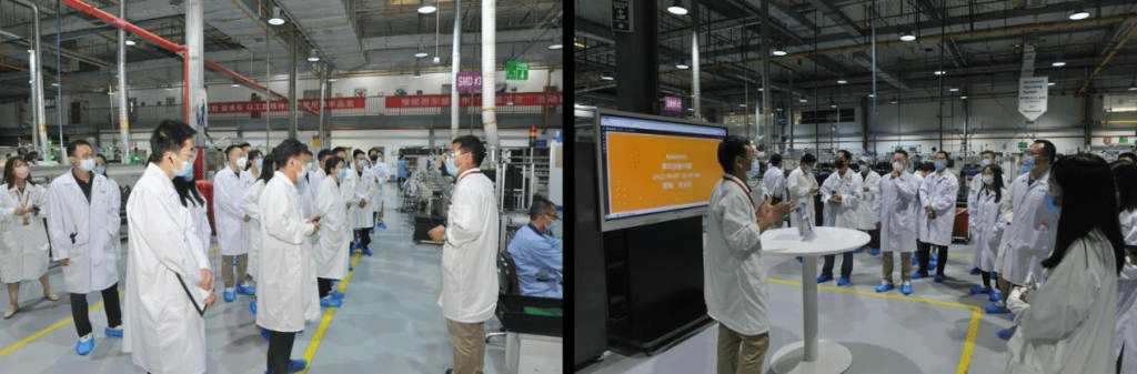 之后,师生乘车前往位于高新区团结南路的西安盛赛尔电子有限公司(霍尼韦尔消防产品生产工厂)进行参观学习,该基地于2017年获得霍尼韦尔最高级别精益管理World Class认证。生产部经理李小峰向师生详细介绍了霍尼韦尔的人才战略和HOS管理体系,带领师生深入生产现场,参观霍尼韦尔电装单元和半圆形总装线,详细介绍了生产现场的供应链管理、问题响应及升级系统、现代化自动装配设备等。通过深入生产一线,参访学生进一步加深对精益生产理念的理解,增长了现代化生产企业管理知识。