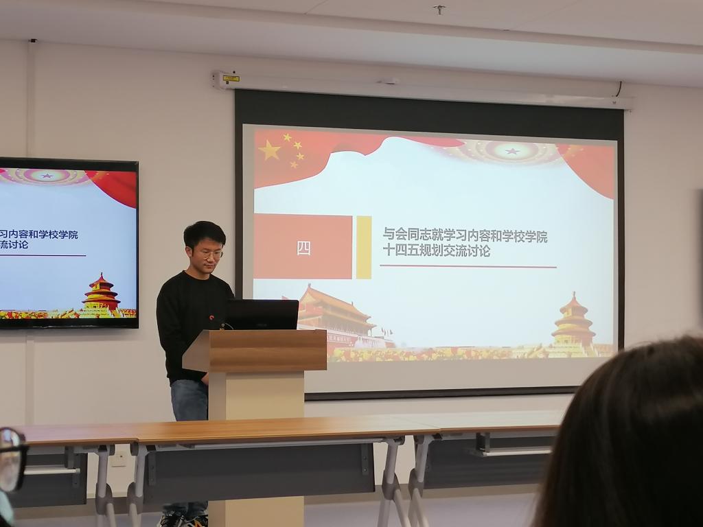 接着,同志们就学习内容和学校学院十四五规划展开了交流讨论。崔浩然,谢万明昱等同志对学院课程安排和跨学院合作提出了自己的见解。同时也表明了自身学习老一辈科学家的务实精神和科研态度、将科学落实到实处杜绝纸上谈兵的学习态度,不断加强学科间的合作,把勤奋钻研放在心上,实现自我更好地提升,为技术创新做出贡献。