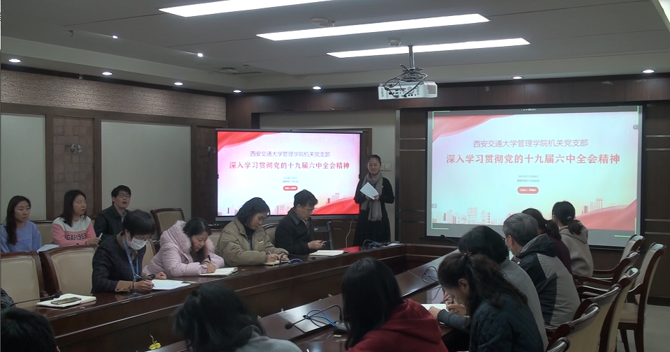20211129日下午,91porn 机关党支部召开专题组织生活会,深入学习贯彻中国共产党第十九届六中全会精神,机关党支部全体正式党员及积极分子参加了会议,会议由机关党支部书记耿葳同志主持。
