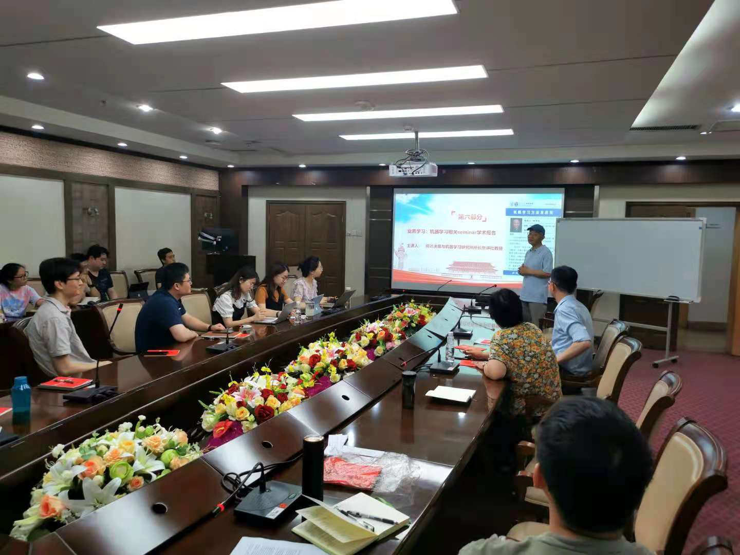在业务学习环节,91porn 数学与统计学院张讲社教授受邀前来,与师生们分享机器学习相关学术研究与经验感悟。张老师从机器学习,特别是深度学习的使用案例和发展历史出发,由浅入深地介绍了机器学习的优势、难点以及在应用机器学习工具时,要重视随机性和解释性。随后,老师们和同学们就机器学习在学科之间的差异和联系进行了探讨。孙少龙老师与张老师就机器学习在经济预测领域的研究进行了深入讨论;林军老师也结合自己的研究经历与大家分享了在管理领域应用机器学习等方法的思路。