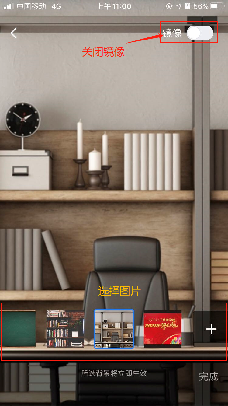 温馨提示:以腾讯会议为例,如果出现背景图片反像,请按以下操作可使背景图片正常使用。