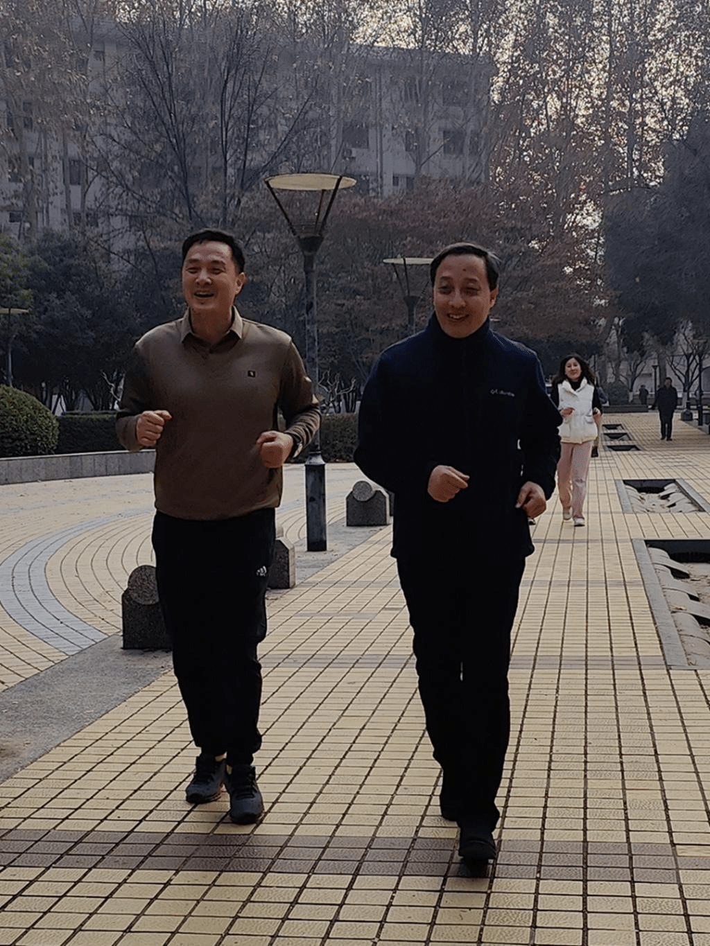 比赛现场一片欢声笑语,教职员工们个个摩拳擦掌,踢腿下腰,热情洋溢地投入到这场体育盛宴之中。赛前学院党委书记马晓彬老师进行了热情洋溢的讲话,随着学院院长冯耕中老师一声号令,教职工们如离弦之箭般冲出起点。前面的老师你追我赶,全力争先,后面的老师选择则安步当车,款款而行,尽情欣赏着冬季校园的独特风景。