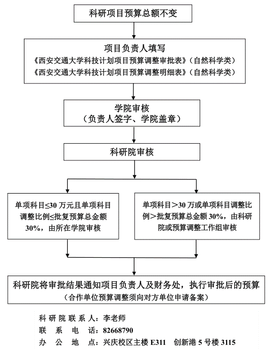 纵向科研项目预算调整(一般事项)办理流程(自然科学类)