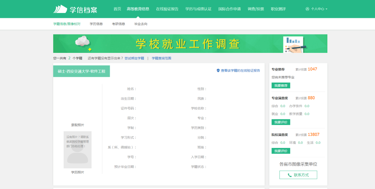 步骤5:进入学信档案界面,点击“毕业证书图像校对”,进入后确认本人学历照片正确无误,截图,然后返回预毕业信息核对界面。