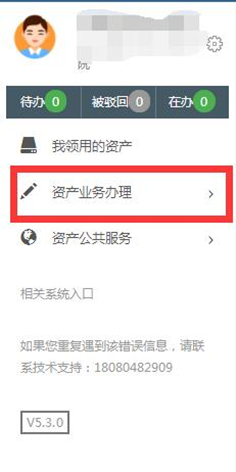 用户通过统一身份认证登录“实验室与资产管理处主页(资产综合管理服务信息平台)”-“资产系统”。