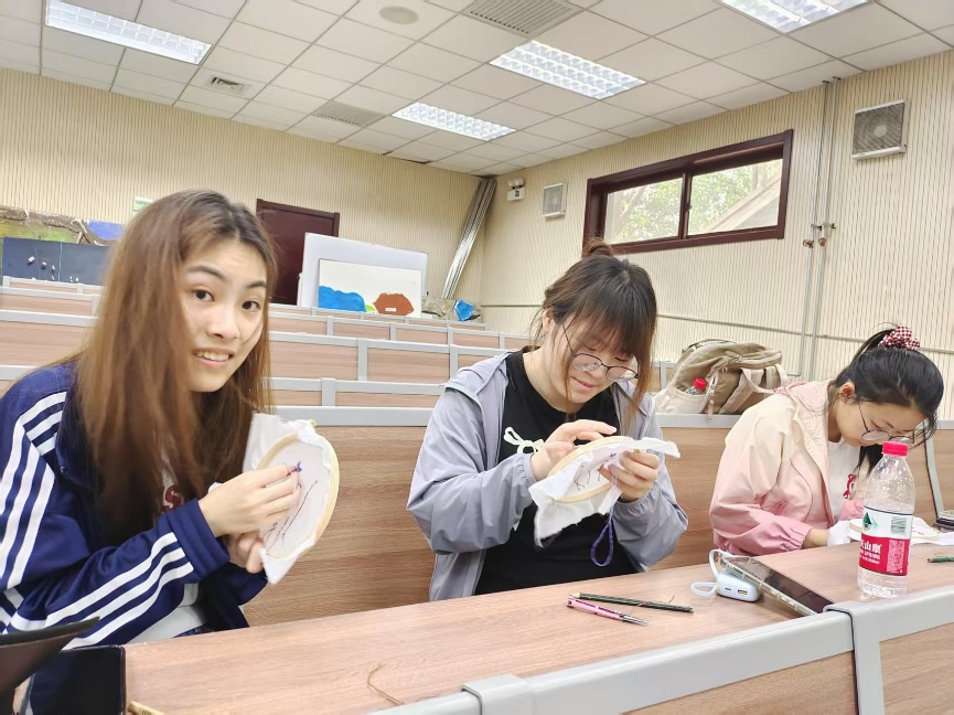 S3102班的侯婕则表示:“这次活动简直是我们手工爱好者的福音,看到这次劳育课,我真的两眼发光,毫不犹豫就报名了。在课上又学习了轮廓绣、缎面绣等基本针法,真的收获满满,希望未来能有更多这样有意思的劳育课,让我们在实践中感受传统技艺的魅力。”