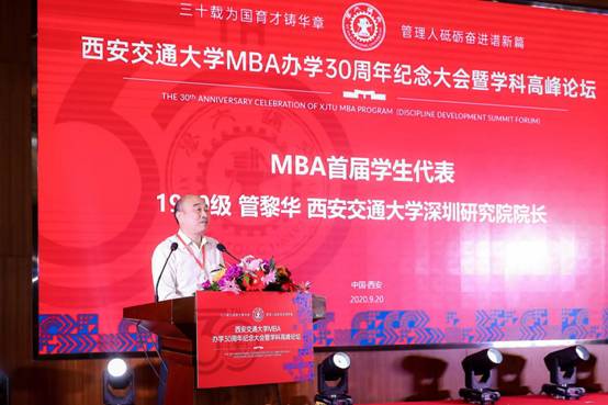 MBA办学新的里程碑,也是继往开来的新起点,面对变革时代新的发展机遇,而立之年的西安交大MBA将继续秉承30年来形成的“忠诚奉献、开放创新、兼容并驱、奋斗拼搏”精神品格,不忘初心、牢记使命、继往开来,砥砺前行,持续为国家经济的建设和发展注入源源不断的优秀人才动力。