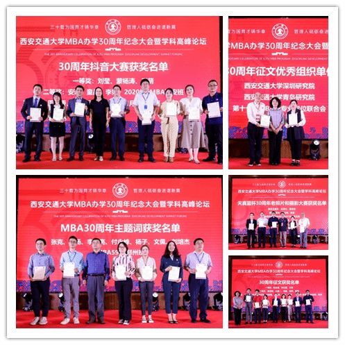 MBA办学30年来所付出的辛勤和努力。最后各位颁奖嘉宾为抖音大赛、征文大赛、老照片/摄影大赛、Logo设计及主题词获奖者颁奖。