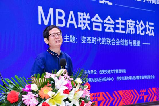 MBA暨专业学位联合会主席袁超作《胸怀天下,敢为人先,MBA人的时代使命与担当》的主题发言。