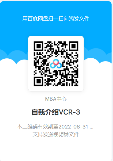 视频提交方式及有效期:视频通过百度网盘提交,格式MP4,大小15M,3分钟以内。有效期截止到2022年8月31日10:37,麻烦在此之前点击以下链接将文件发送给我,支持发送视频格式的文件,感谢~链接://pan.baidu.com/disk/main#/transfer/send?surl=ADkAAAAAAA77XA