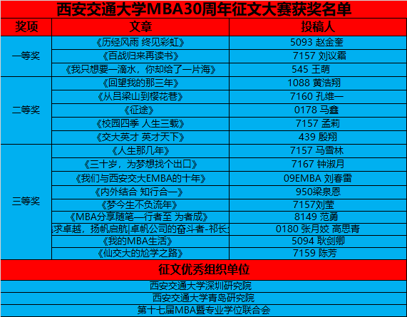 征文大赛获奖名单