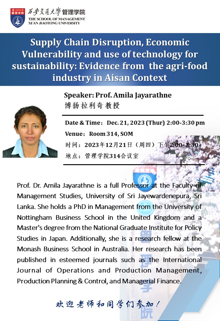 题目:Supply Chain Disruption, Economic Vulnerability and use of technology for sustainability: Evidence from the agri-food industry in Aisan Context 2023-12-14