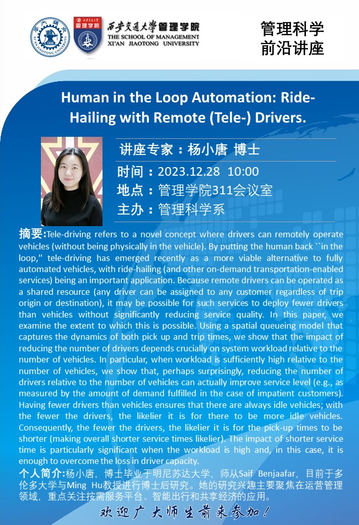 题目:Human in the Loop Automation: Ride-Hailing with Remote (Tele-) Drivers