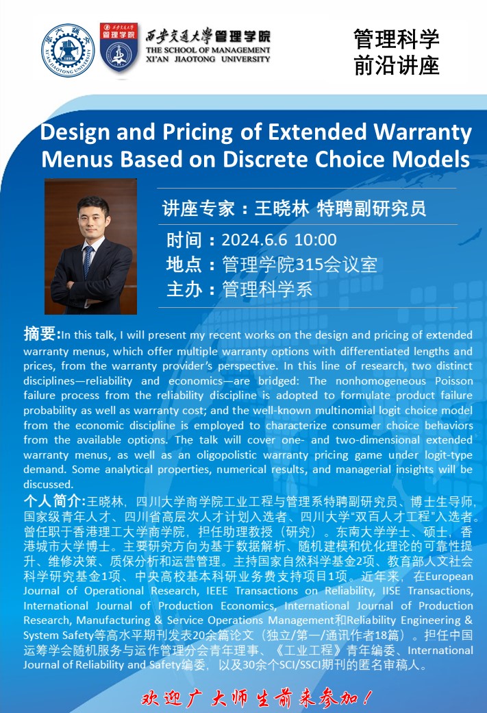 讲座:Design and Pricing of Extended Warranty Menus Based on Discrete Choice Models